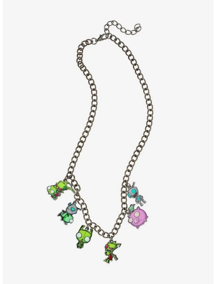 We’ve got a sick new necklace that would make any human and Irken jealous! Take over the world with this charm necklace from Invader Zim,Β featuring Zim and GIR pendants across the center of the chain.