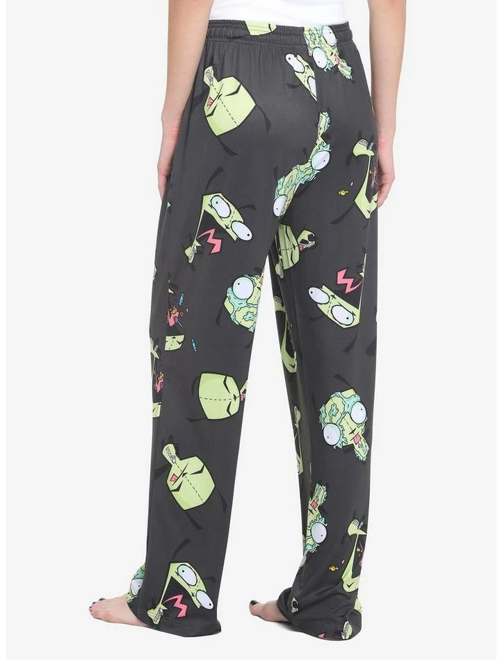 Feelin’ a sugar crash from all the snacks? Knock out with GIR in these cozy Invader Zim pajama pants! They feature an allover toss print of GIR in his dog costume and come with hip pockets, a single-button fly and an elasticated drawstring waistband.