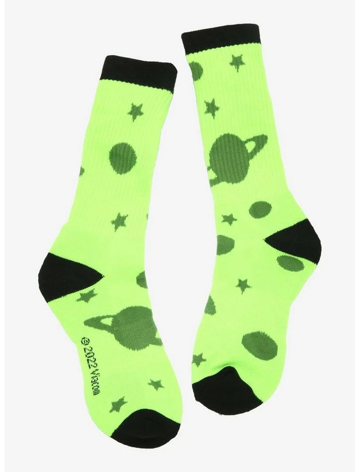Explore the galaxy with your Invader Zim fave! These green crew socks feature an allover print of planets and stars, plus 3D plush detailing of GIR at the ankle.